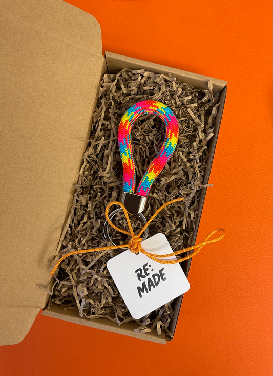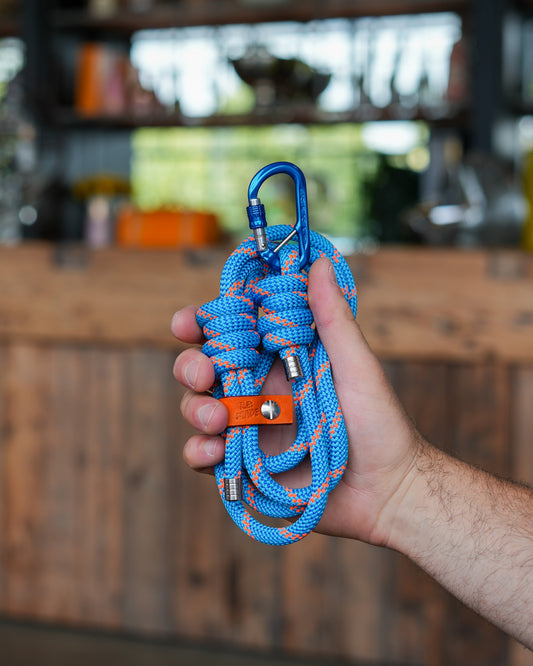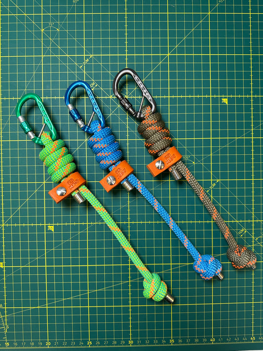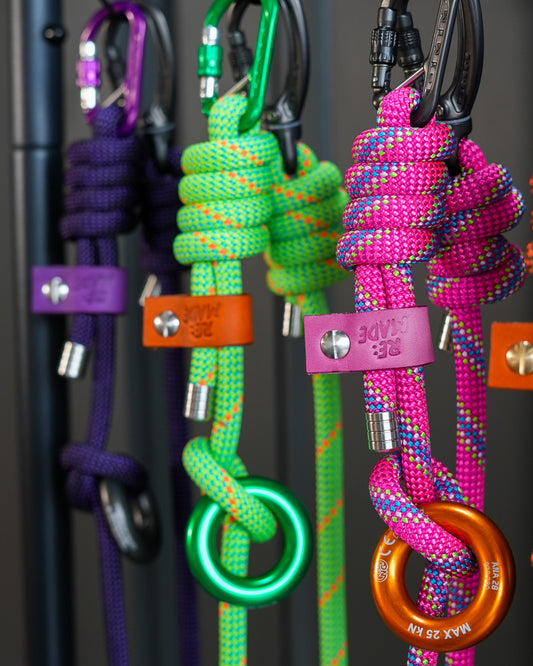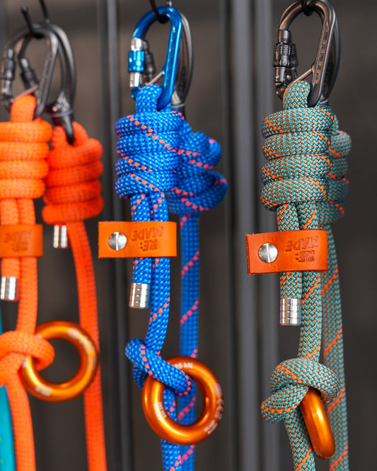 Handmade rope keyrings using recycled offcuts from our best-selling climbing rope dog leads.
