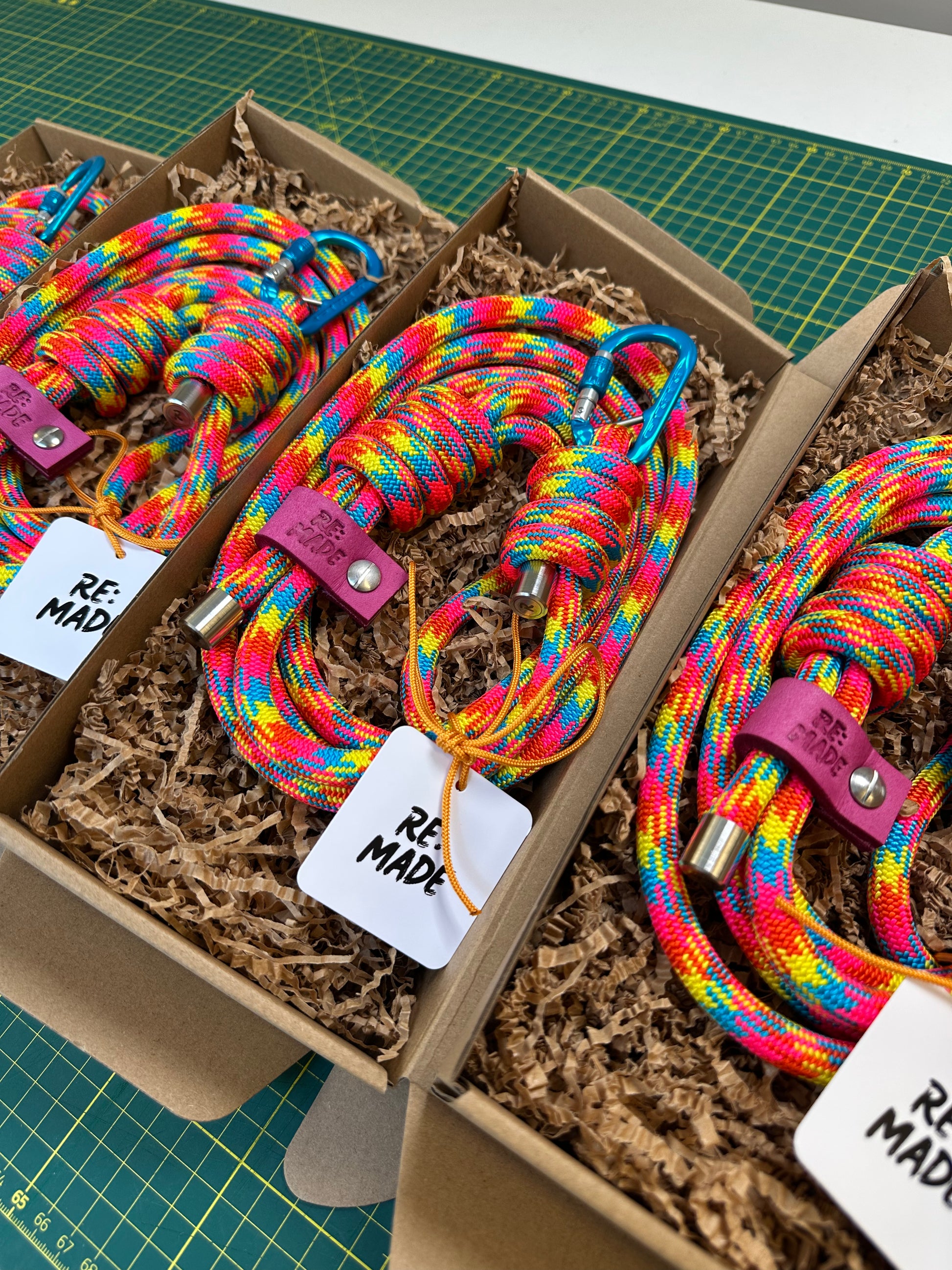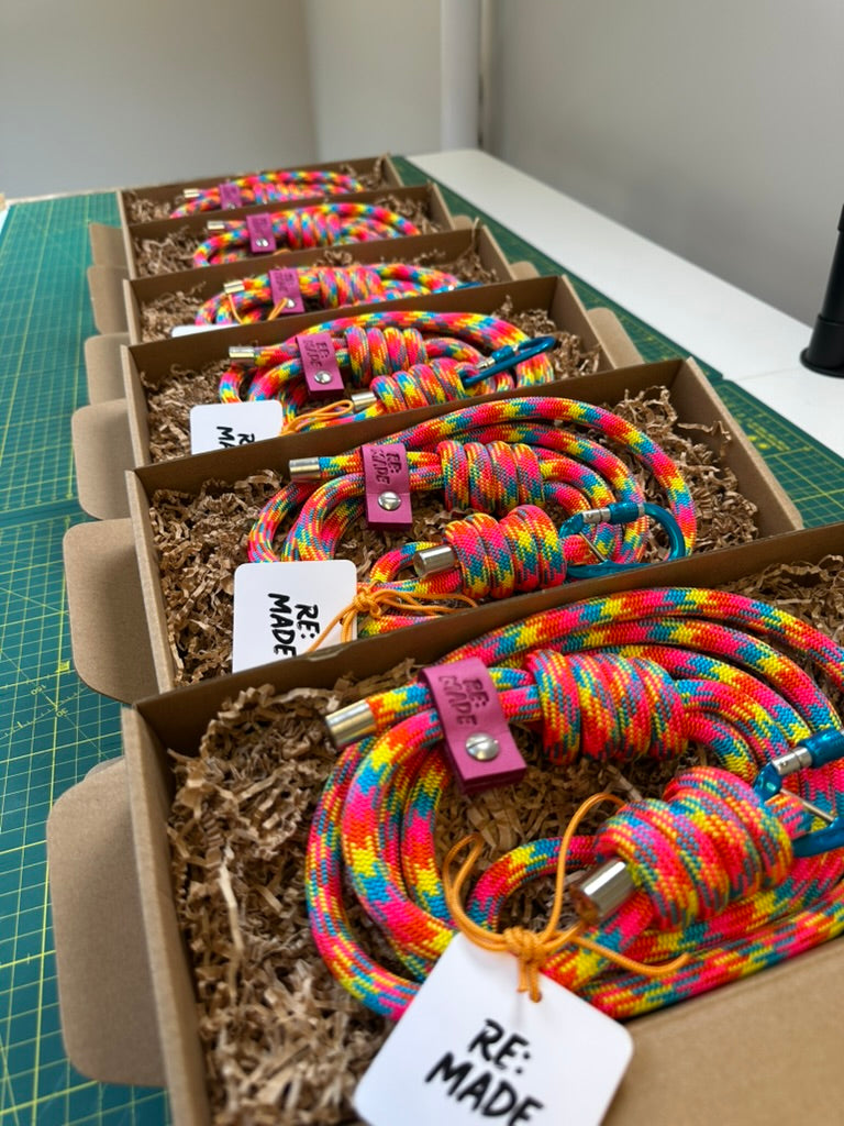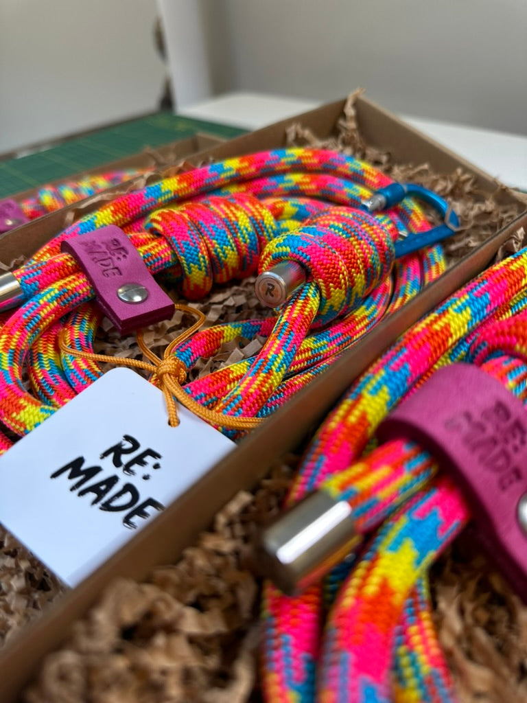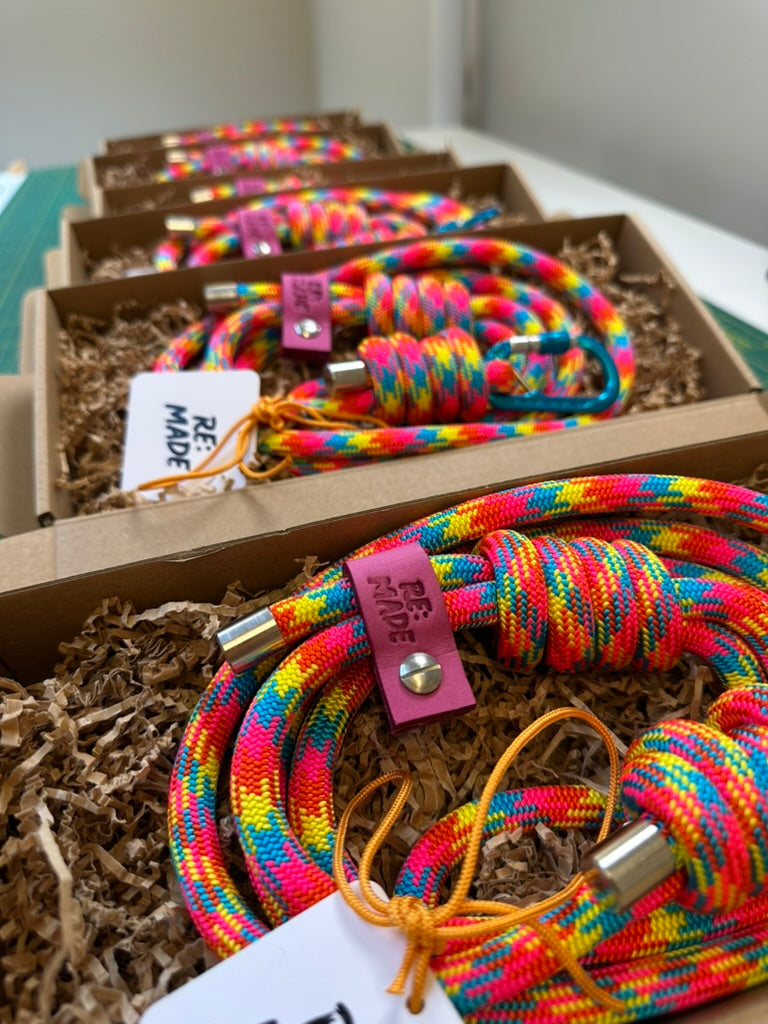 Our limited edition hand assembled rope lead combines the world's best climbing materials with a love for colour. Tested for durability, each lead uses Tendon® professional climbing rope and DMM® carabiner designed for the toughest of adventures.